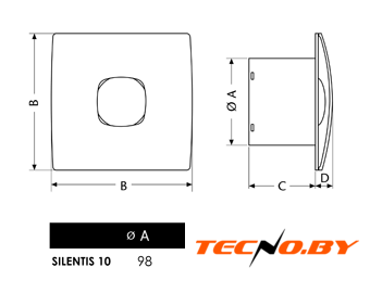 накладной осевой вентилятор, потолочная/настенная установка, диаметр: 10 см, производительность: 100 куб.м/ч, 15 Вт, отдельная кнопка или выключатель света, зеркальный