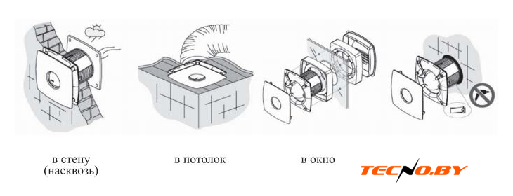 накладной осевой вентилятор, потолочная/настенная установка, диаметр: 12 см, производительность: 195 куб.м/ч, 20 Вт, отдельная кнопка или выключатель света + таймер (задержка отключения) + датчик влажности, белый