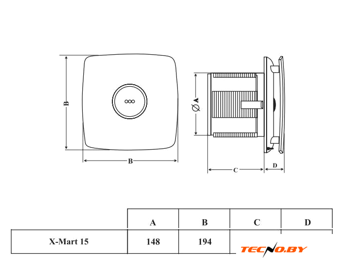 накладной осевой вентилятор, потолочная/настенная установка, диаметр: 15 см, производительность: 280 куб.м/ч, 29 Вт, отдельная кнопка + выключатель света, белый
