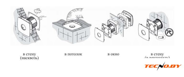| Включение/выключение | отдельная кнопка, выключатель света, таймер (задержка отключения), датчик влажности |