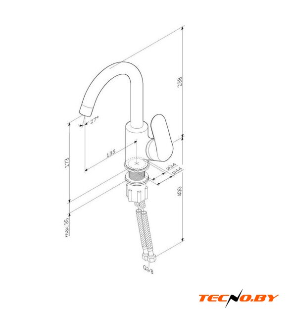 однорычажный смеситель для мойки, монтаж на раковину или столешницу