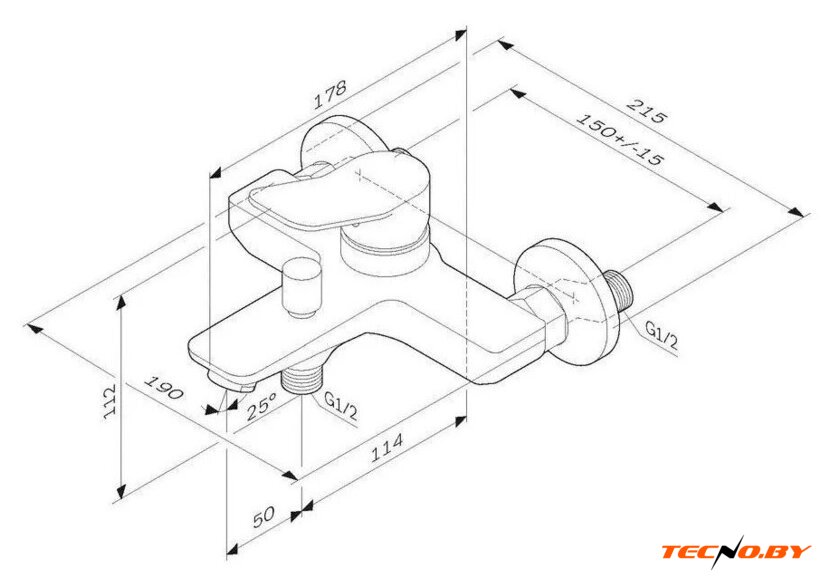 однорычажный смеситель для ванны и душа, монтаж на стену