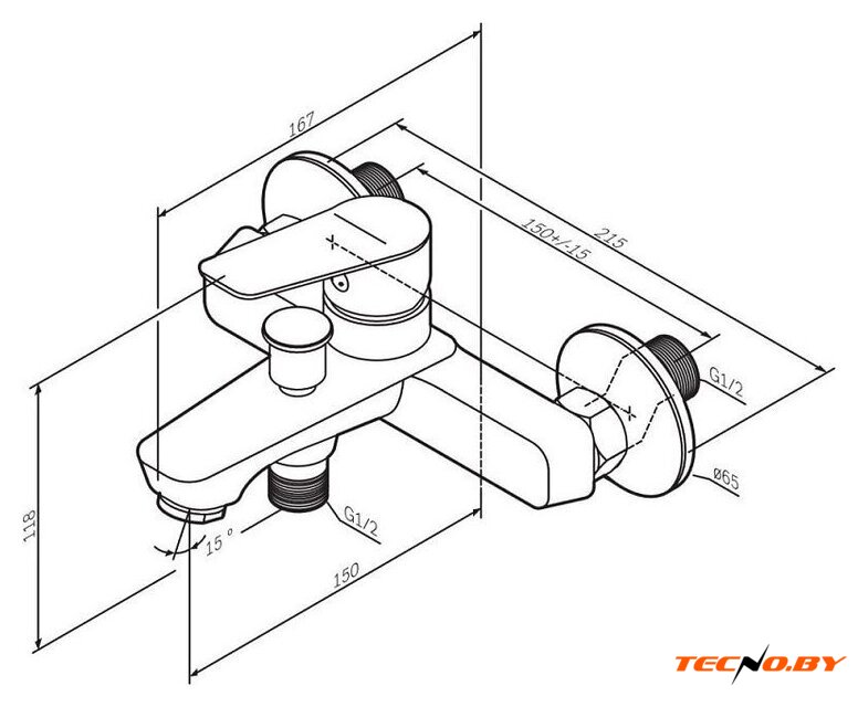 однорычажный смеситель для ванны и душа, монтаж на стену