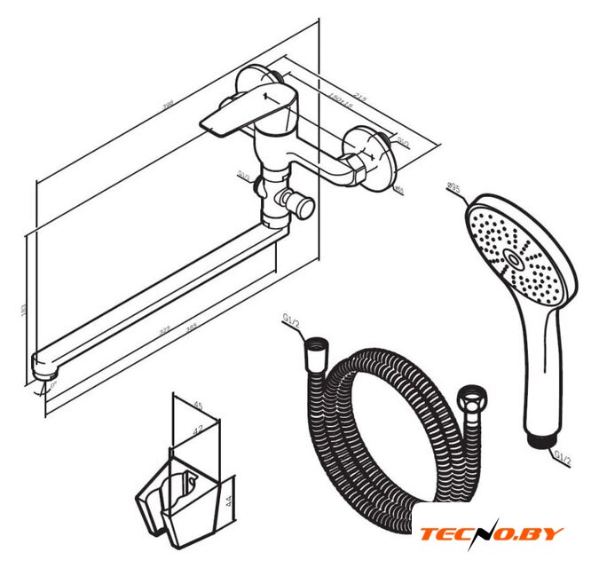 | Длина (вылет) излива | 325 мм |