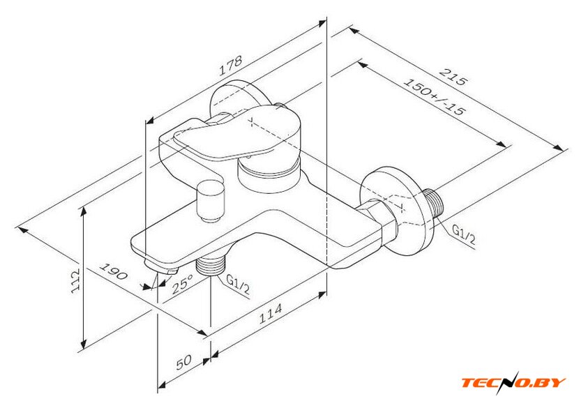 однорычажный смеситель для ванны и душа, монтаж на стену