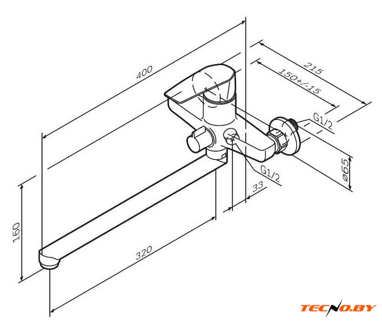 однорычажный смеситель для ванны и душа, монтаж на стену