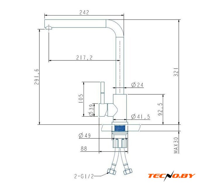однорычажный смеситель для мойки, монтаж на раковину или столешницу