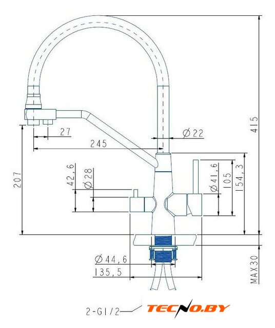 однорычажный смеситель для кухни, монтаж на раковину или столешницу