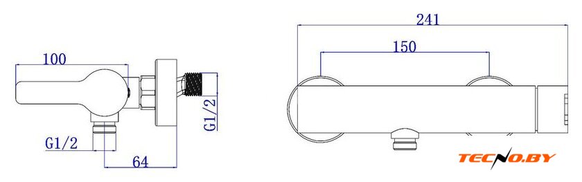 однорычажный смеситель для ванны и душа, монтаж на стену