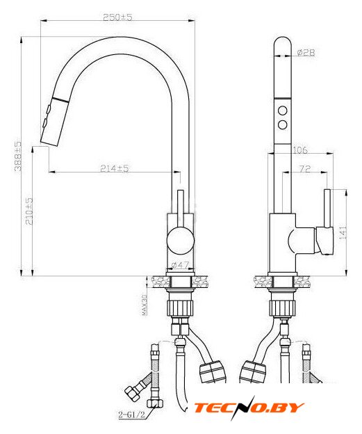 | Выдвижной/гибкий излив | с аэратором |