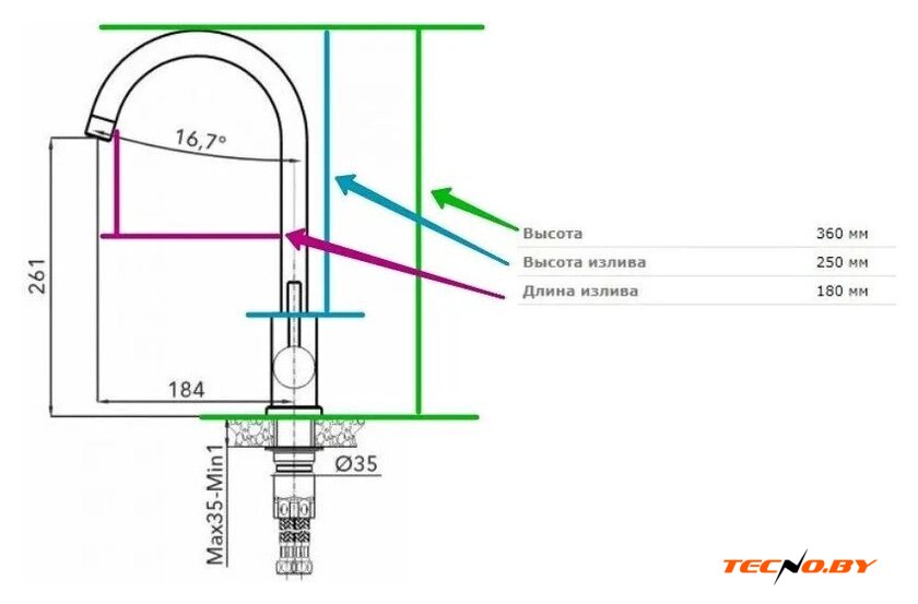 однорычажный смеситель для мойки, монтаж на раковину или столешницу