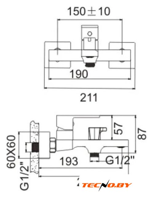 однорычажный смеситель для ванны и душа, монтаж на стену