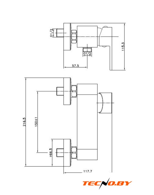 однорычажный смеситель для ванны и душа, монтаж на стену