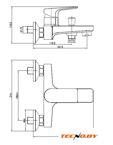 | Длина (вылет) излива | 161.5 мм |