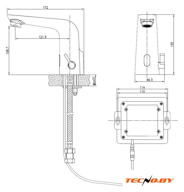 однорычажный смеситель для ванны и душа, монтаж на стену