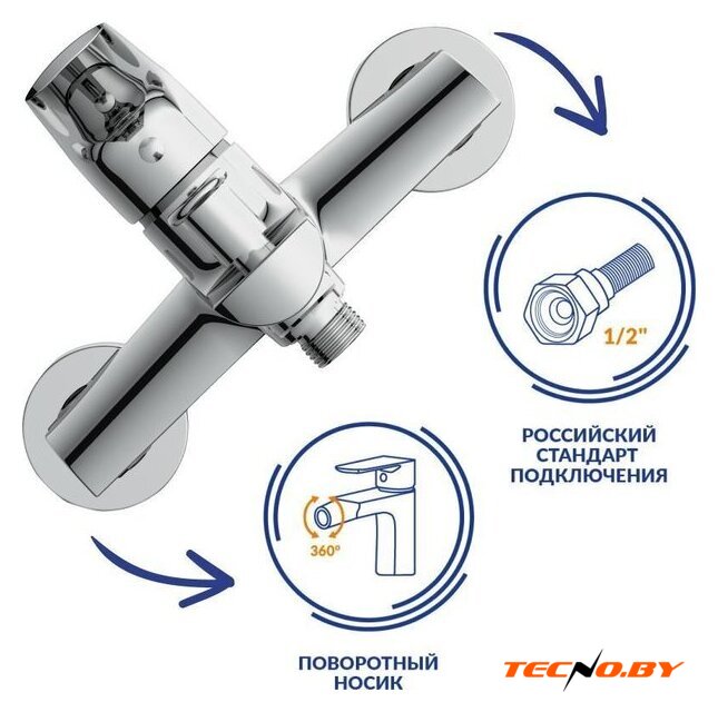однорычажный смеситель для ванны и душа, монтаж на стену