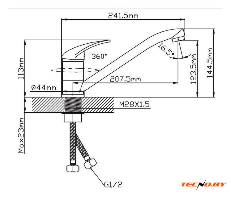 однорычажный смеситель для мойки, монтаж на раковину или столешницу