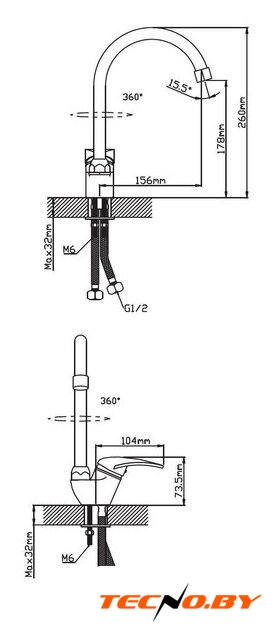 однорычажный смеситель для кухни, монтаж на раковину или столешницу