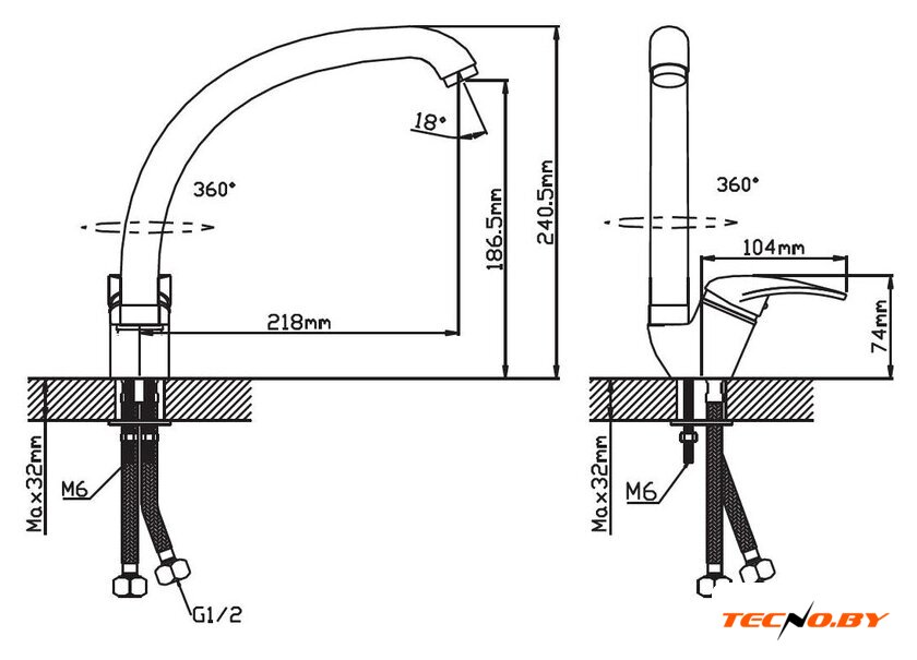 однорычажный смеситель для мойки, монтаж на раковину или столешницу