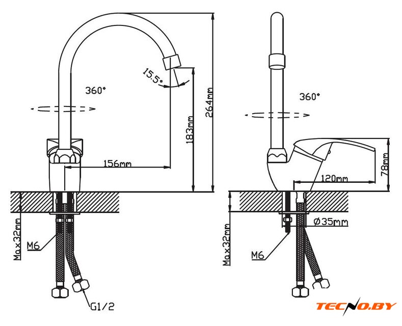 однорычажный смеситель для кухни, монтаж на раковину или столешницу