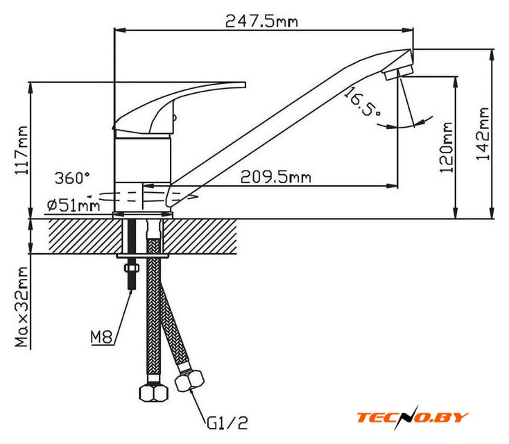 однорычажный смеситель для мойки, монтаж на раковину или столешницу