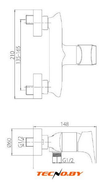 однорычажный смеситель для ванны и душа, монтаж на стену