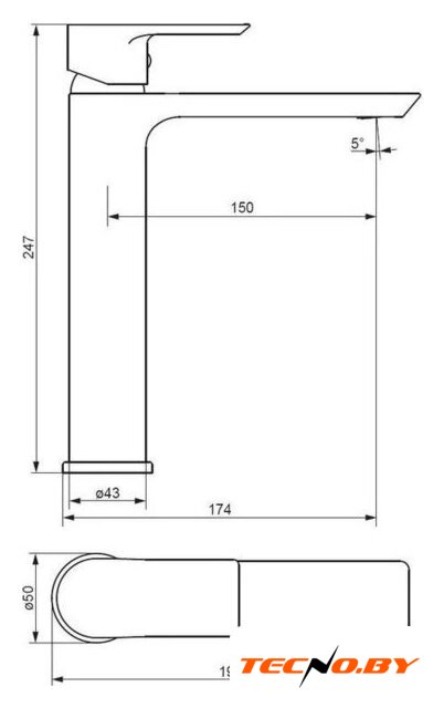 | Длина (вылет) излива | 150 мм |