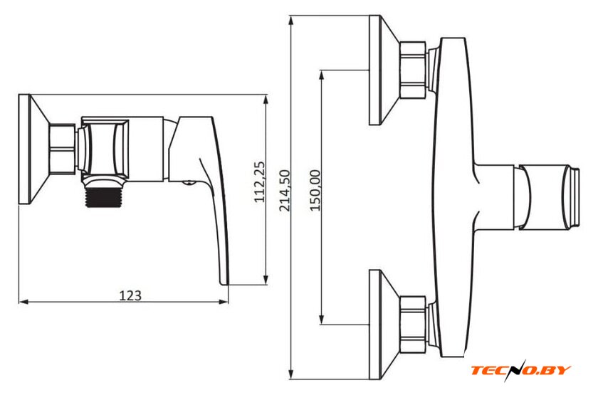 однорычажный смеситель для ванны и душа, монтаж на стену