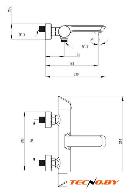 однорычажный смеситель для ванны и душа, монтаж на стену