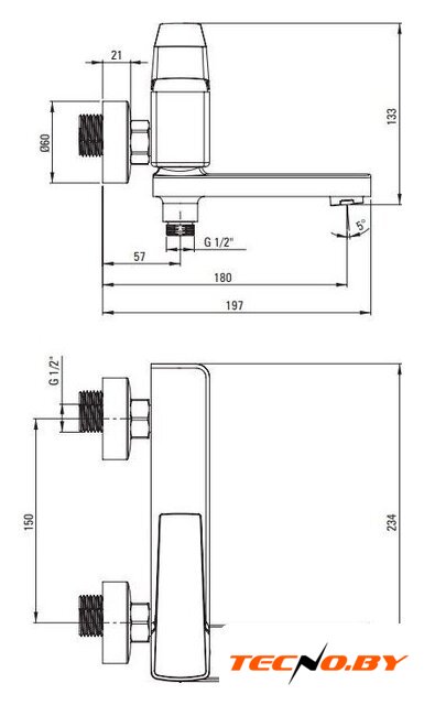 однорычажный смеситель для ванны и душа, монтаж на стену