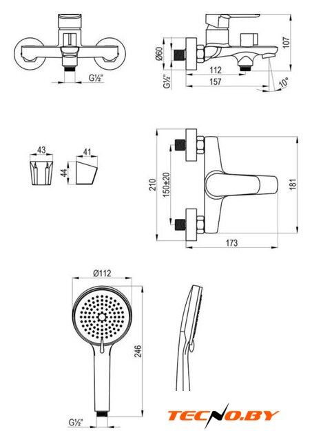 | Длина (вылет) излива | 112 — 157 мм |