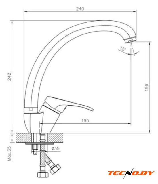 двухвентильный смеситель для кухни, монтаж на раковину или столешницу