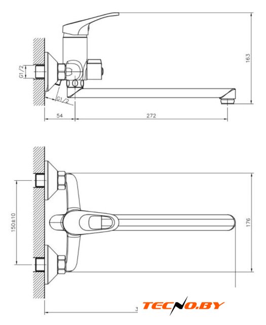 однорычажный смеситель для ванны и душа, монтаж на стену