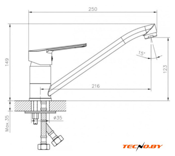 однорычажный смеситель для кухни, монтаж на раковину или столешницу