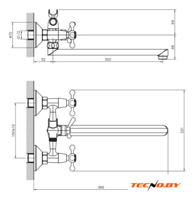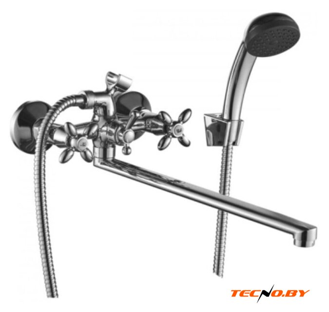 двухвентильный смеситель для ванны и душа, монтаж на стену