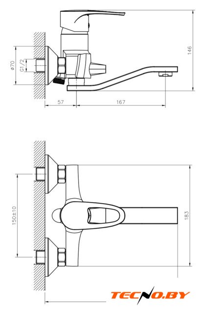 однорычажный смеситель для ванны и душа, монтаж на стену