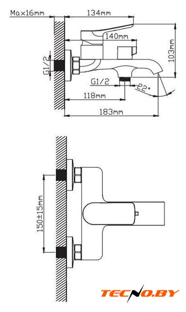 однорычажный смеситель для ванны и душа, монтаж на стену