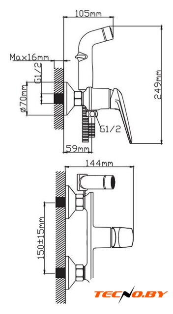 однорычажный смеситель с лейкой для биде для биде, монтаж на стену