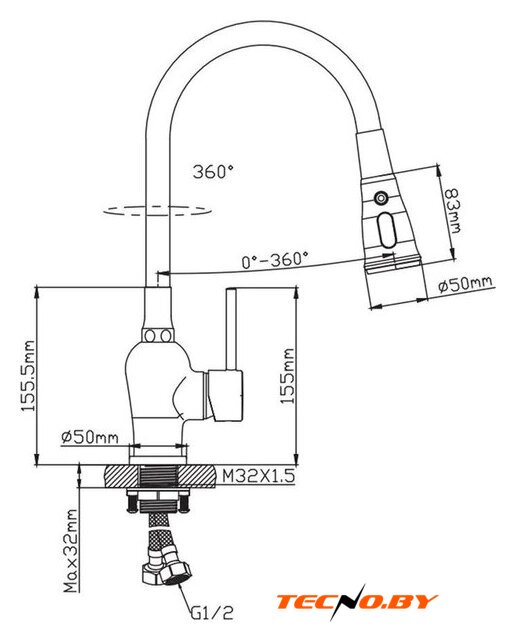 однорычажный смеситель для мойки, монтаж на раковину или столешницу