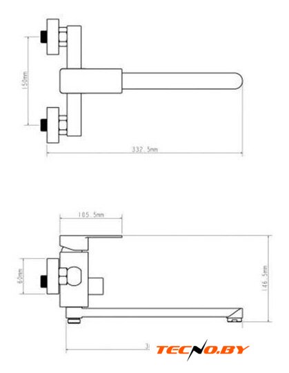 однорычажный смеситель для ванны и душа, монтаж на стену