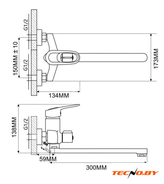 однорычажный смеситель для ванны и душа, монтаж на стену