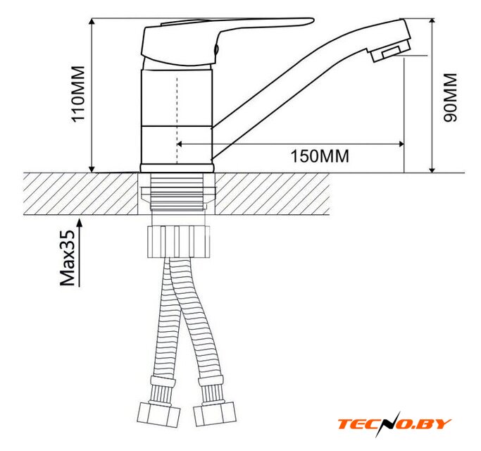 однорычажный смеситель для мойки, монтаж на раковину или столешницу
