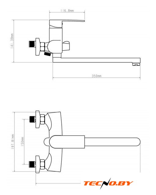 однорычажный смеситель для ванны и душа, монтаж на стену
