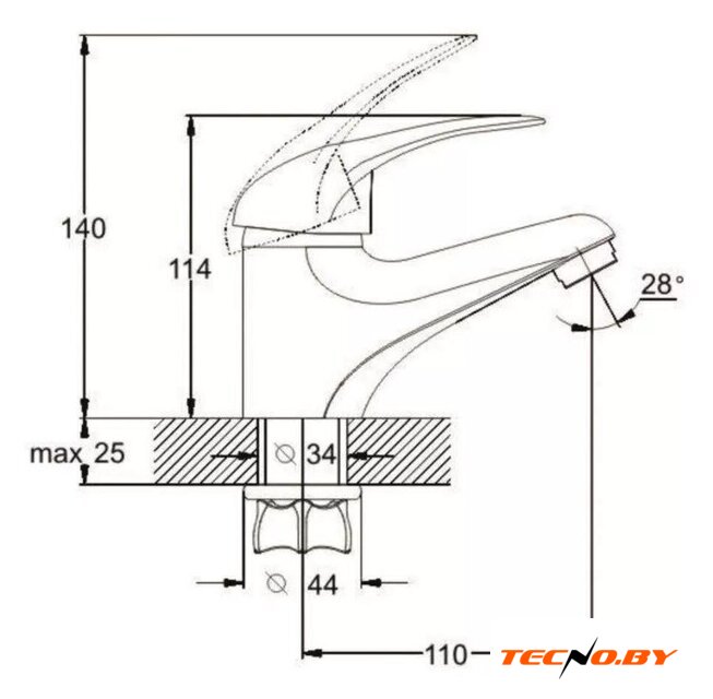 однорычажный смеситель для умывальника, монтаж на раковину или столешницу