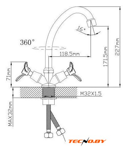 двухвентильный смеситель для умывальника, монтаж на раковину или столешницу