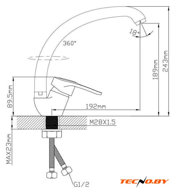 | Поворотный излив | 360 ° |