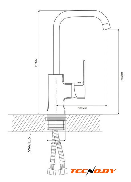 однорычажный смеситель для мойки, монтаж на раковину или столешницу