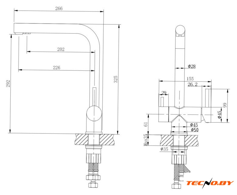 однорычажный смеситель для мойки, монтаж на раковину или столешницу