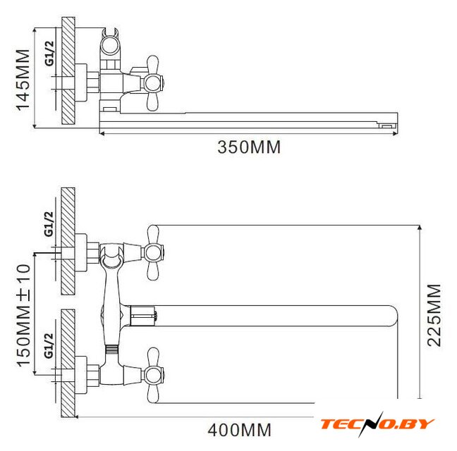 однорычажный смеситель для ванны и душа, монтаж на стену