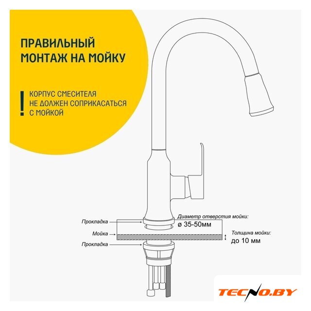 однорычажный смеситель для мойки, монтаж на раковину или столешницу